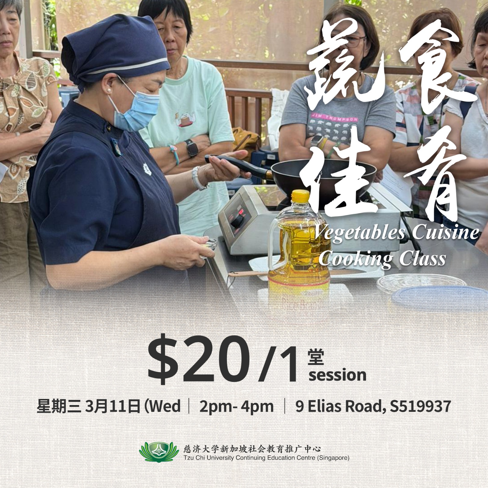 Ms Hsueh is devoted to sharing the beauty of vegetarian cooking. With years of experience, she not only brings delicious vegetarian dishes to her students but also passionately promotes vegetarianism as a healthy and delightful lifestyle choice. Through hands-on demonstrations, she imparts not just the flavors but also the cultural and philosophical richness of vegetarian cuisine. As a dedicated Tzu Chi volunteer, her efforts extend beyond the culinary realm, embodying a love for life and a caring concern for society. Join us in savoring the culinary artistry and insightful teachings of Ms Hsueh.